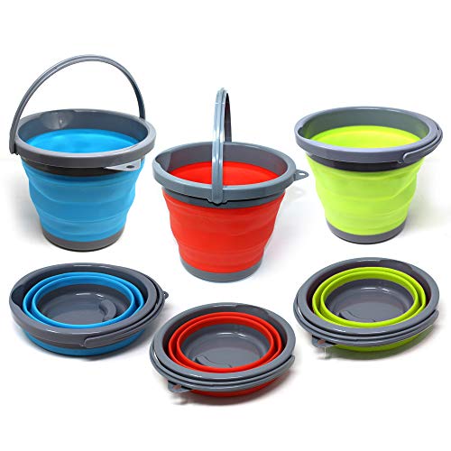 Bramble - 3 Portable Space Saving Collapsible 5 Litre Buckets - Assorted Colours