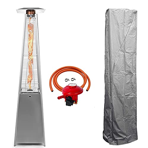 - EFFICIENT HEATING: This pyramid shaped outdoor heater is powered by propane gas and displays an attractive open flame safely contained in a quartz glass tube Its column design and pagoda shaped reflector atop the unit helps maximum heat and warmth radiate and spread out over a 10foot radius