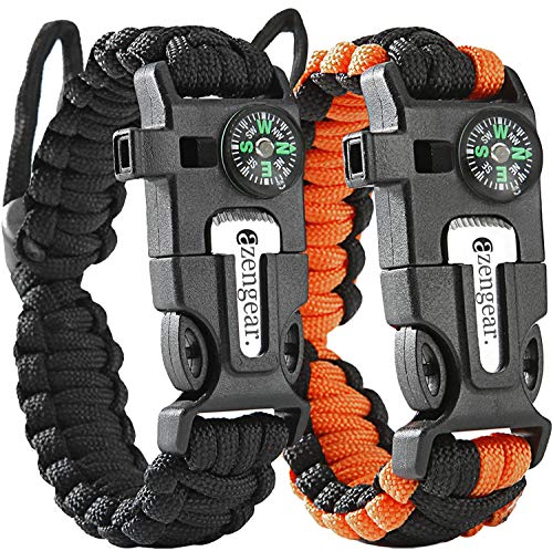 - 5 in 1 EMERGENCY SURVIVAL KIT each bracelet consists of a flint and steel fire starter loud 100dB whistle basic compass mini saw and waterproof militarygrade paracord