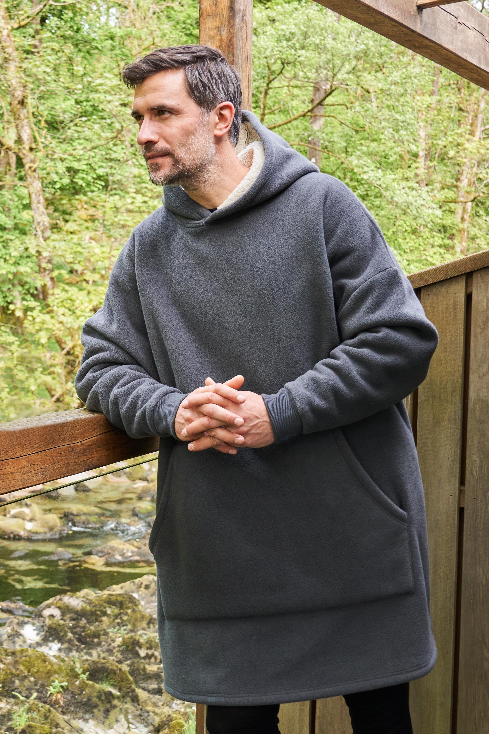 Our Snug Borg Lined Hooded Blanket is perfect for relaxing at home. It is made of soft fleece fabric with borg lining for a comfortable fit. This hooded blanket has stretch cuffs, a kangaroo pocket and a hood, making it ideal for chilled days indoors.
