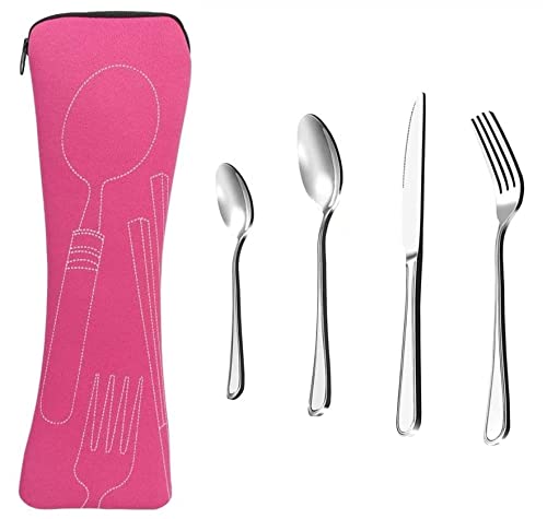Voarge 4 Pcs Cutlery Set with Portable Pouch Case, Silverware Travel Cutlery Set Stainless Steel