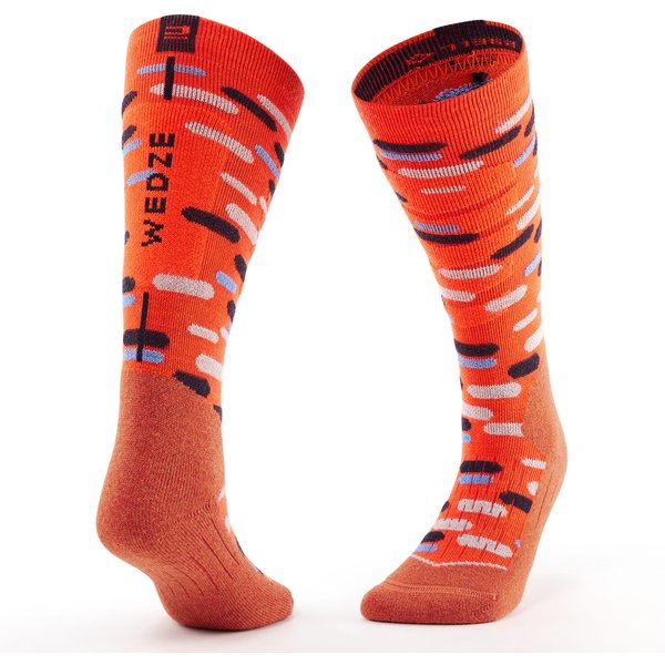 WEDZE - CHILDREN'S SKI AND SNOWBOARD SOCKS 100 - ORANGE PATTERNED
